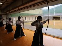 弓道部がいつも使わせていただいている白山郷武道館弓道場にて