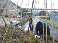 11月23日勤労感謝の日午前8時から白山市の武道館周辺のクリーン活動に参加しました。白山市の施設を使用する少年団のちびっ子たちと一緒に落ち葉やゴミなどの清掃活動をしました。その後弓道場の冬支度で戸を入れたり、ビニイルを張ったりしました。弓道場は吹きさらしになるので矢の通る50センチくらいの四角形を開けたビニイルを前面に張るのです。脚立に上ってフックにビニイルをかけたり、大汗かいてやっていました。これで冬でも温かくして練習ができます。