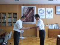 今月20~25日に台湾で開催される東アジアカデ柔道選手権大会に日本代表として参加することが決定した若狭選手に、学校長より激励費とともに「落ち着いて取り組めば必ず優勝できる」という熱いエールもいただきました。期待に応えるべく世界へ羽ばたいてきます!