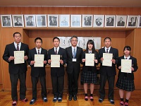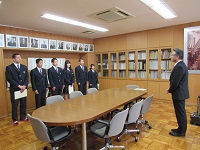 4月8日、前期生徒会役員の任命式が行われ、3月の選挙で信任された6名の役員が校長室に集まりました。前期の役員は何と、6名中4名がスポーツ科学コースに所属、残り2名も運動部所属という、近年まれにみる「体育会系 生徒会」となりました。選挙演説では「鶴高のよさである『あいさつ』をさらに向上させたい」「あたりまえのことをきちんと実行することを大切にしたい」など、鶴来高校を今以上に素晴らしい学校にしたいという、熱い思いを語っていた6名。今日の任命式で校長先生から手渡されたピカピカの任命状を手に、新しい年度への決意を新たにしました。
