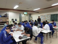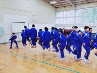 2019年4月11日 17時50分 今日から授業がスタートした1年生ですが、スポーツ科学コースは午後から白山麓少年自然の家で行われる新入生宿泊オリエンテーションにでかけました。スポ科の担う役割を知り、3年間の学校生活に向けての「志」を共有し、クラスの団結を図ることを目的としています。はじめに学校生活について等のオリエンテーションの後、集団行動の練習、さらには団結を高めるために長縄跳びを行いました。14Hなだけに14回は越えたいところをなんとか15回飛ぶことができました。また、失敗しても誰も責めることなく次頑張ろうという雰囲気になる非常に良い集団となっていきました。また夜には教頭先生や体育科主任の糀先生が応援にかけつけてくださり、2人の話に真剣に聴き入っていた1年生たちでした。その後の振り返りも全力で取り組んでいました。