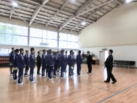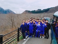 2019年4月12日 18時15分 宿泊オリエンテーション2日目の今日は朝の6時半起床、6時50分にダッシュでバスに乗り込み、気温1度の手取川ダムの散策と円陣バレーから始まりました。どのグループも20回を超えるトス回しができ、全員で行ったときは41回を数える団結力を見せました。また朝食後の歌唱練習ではスポ科主任の新田先生の熱い指導の下、ダッシュを交えながらの身体全体を使った歌に仕上がっていきました。緊張のためか、夜、あまり眠れていない生徒もいたようですが、そんなことを感じさせない元気さで、続く自己紹介の練習も全力で取り組んだ1年生たちでした。