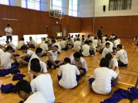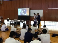 2019年5月8日 16時10分 今日は3,4限目にスポーツ科学コース全学年でテーピング実習が行われました。今年も10年以上お世話になっている、ピップ株式会社の横部さんを講師にお招きし、筋肉の流れに沿った効果的なテーピングの巻き方を教えていただきました。3年生は慣れた手つきで、素早く巻けていましたが、1年生は初めてということもあって四苦八苦しながら巻いていました。講師の先生も3年生の成長に感心している様子でした。
