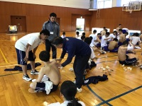 今日は3,4限目にスポーツ科学コース全学年でテーピング実習が行われました。今年も10年以上お世話になっている、ピップ株式会社の横部さんを講師にお招きし、筋肉の流れに沿った効果的なテーピングの巻き方を教えていただきました。3年生は慣れた手つきで、素早く巻けていましたが、1年生は初めてということもあって四苦八苦しながら巻いていました。講師の先生も3年生の成長に感心している様子でした。