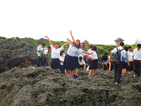 朝食後は読谷村(よみたんそん)の残波岬へ行き、東シナ海の雄大な景観を