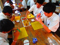 製作やシーサーの色付けを時間を忘れるくらい集中して取り組んでいました。