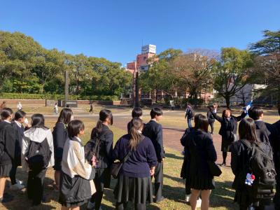 2025年12月10日 18時17分12月10日(水)ホテルを出発し、長崎方面へ向かいました。最初に訪れた長崎平和公園や原爆資料館では、当時の資料などを熱心に見つつ、時には質問をして学びを深めていました。その後、長崎市内を巡る自主プランへ。グループで事前に決めたチェックポイントを巡りつつ、眼鏡橋や中華街などの観光地を楽しんでいました。以下は生徒の振り返りです。