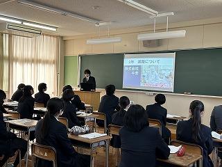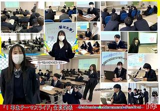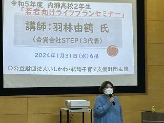 結婚等を含めた今後の人生設計について、学生一人ひとりに考えてもらう出前講座を2年生対象におこないました。講師の先生は、羽林由鶴(はねばやしゆず)氏で、恋愛・生き方カウンセラーとして勤めていらっしゃいます。今回、本校教員の恋愛話をもとに、様々な経験が成長につながることを教えてくださいました。(生徒の感想)失敗してこその成長や成功があるとわかりました。今はモテないけど今後モテるかもしれないし、人は変われるんだなあと思った。