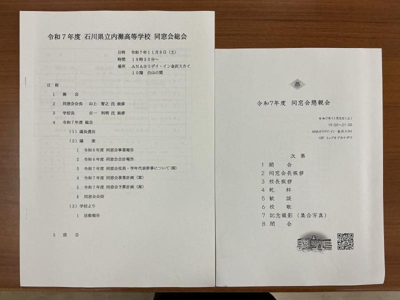 11月8日(土)、ANAホリデイ・イン金沢スカイにて同窓会総会・懇親会を開催いたしました。当日は、ご多用の中お集まりいただき、母校の近況や今後の方向性について、活発な意見交換が行われました。総会では、次年度より新しい会長が就任することが承認され、新たなスタートを切る大切な場ともなりました。同窓会の皆さまには、日頃より本校の教育活動に温かいご理解とご協力を賜り、心より感謝申し上げます。これからも、よりよい学校づくりのために、変わらぬお力添えをお願い申し上げます。ご出席いただいた皆さま、本当にありがとうございました。