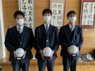 先日、卒業式が行われ、本校サッカー部では3名の卒業生がいました。