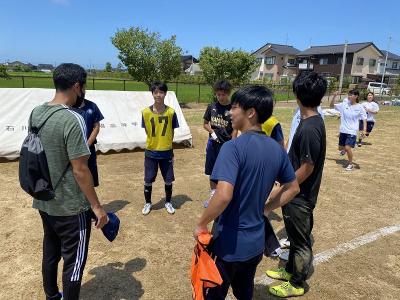 部員の中には内灘中出身者がいるので、前顧問の先生や選手と顔を合わせながら、自身の成長を発揮する場ともなっていました。中学校との試合からも学ぶことは多く、OBの先輩も2人来てくれ、戦術などの確認をしました。選手権まで1か月、一人ひとりができることを精一杯おこない、どんどん成長してくれることを期待しています。