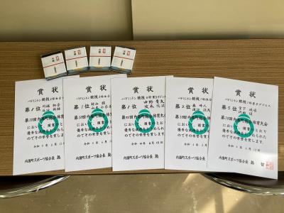 今大会では、総体にでることができなかったメンバーや3年生、顧問も出場しました!1年生は初めての大会出場者がほとんどで、少し緊張した面持ちでした。2年生は男子ダブルス3部で中野・茨木が第1位、女子ダブルス3部で山本・村山が第1位としっかりと結果を残しつつ、自分の実力を発揮できていました。また、3年生は総体で一区切りでしたが、参加した部長の渡辺涼花は顧問の奥と、副部長の川島大雅は副顧問の笠原とダブルスを組みました。奥・渡辺は混合ダブルス1部で第2位でした。川端初奈は2年生の谷口と最後の大会に挑み、女子ダブルス2部で見事、第1位を獲得しました。
