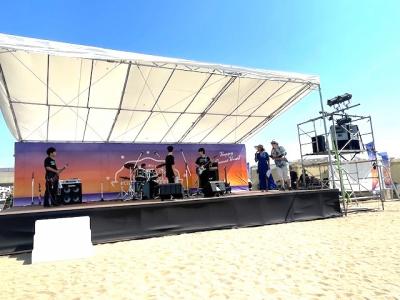 ステージからは水平線が一望でき、ビーチのお客さんたちの声援や拍手をうけて