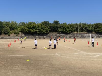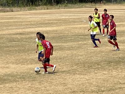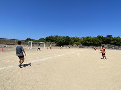 試合では2点を取ることができましたが、1年 長・2年 富沢もあと少しで1点!という悔しい場面もありました。決して1人では相手ゴール前まで行くことはできません。チームとしてボールを運ぶことができたからこその結果だと感じます。まだまだボールを受けるための声掛け・アクションが出来ていない部分が大きな課題ではありますが、試合に少しずつ慣れてきた印象もあります。大変暑い中ではありますが、みんな頑張っています!