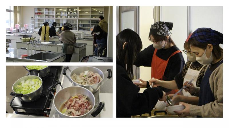 12月22日(月)球技大会2日目にあわせて、本校PTA12名の皆さまが参加し、豚汁作り・豚汁提供を行ってくださいました。昨年度の経験を生かし、作り方をアップグレード。段取りよく、効率的に調理が進められ、寒さの中でもスムーズに提供することができました。