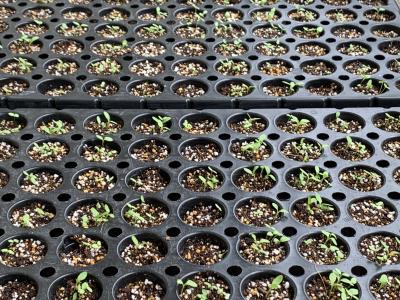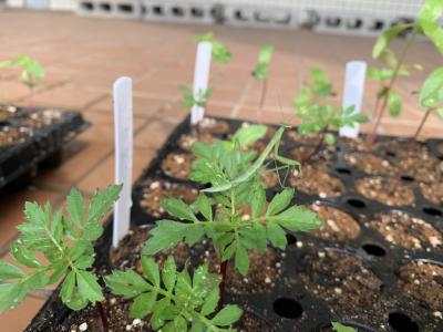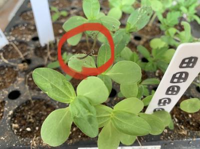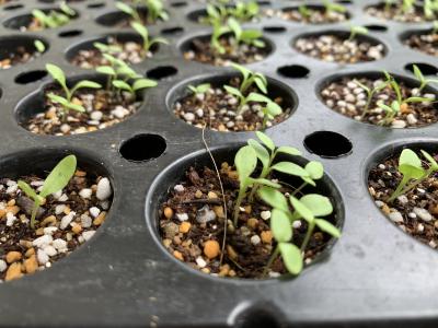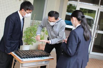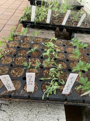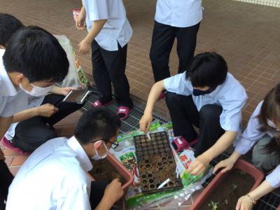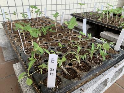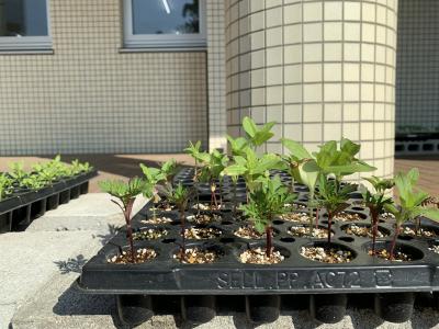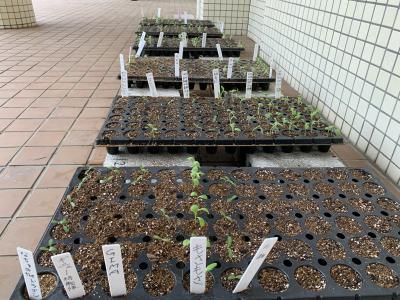 生徒が植えた種で育つ苗