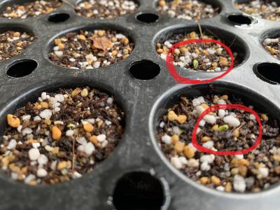 生徒は毎日代わる代わる水やりをしています。種植えから1週間、ついに芽が出てきました。生徒は毎日成長を楽しみにしています。