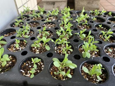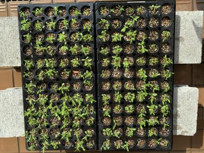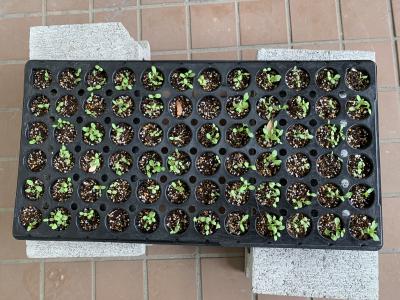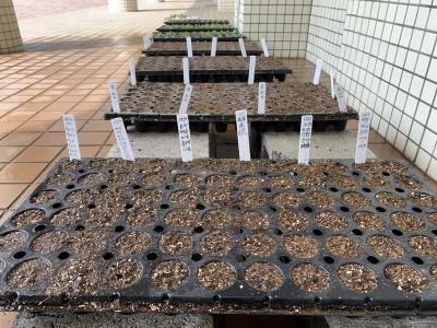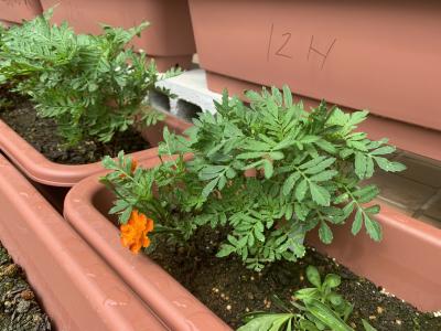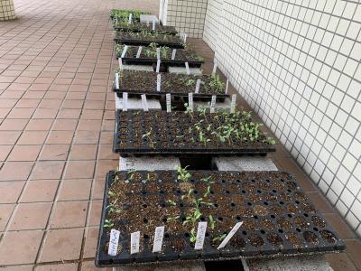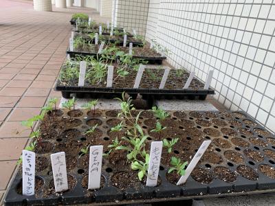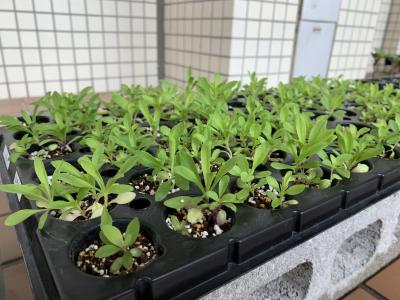 全校生徒が花の種を植えて25日目。保護者の方々が種を植えて42日目。まだまだ小さい苗なので毎日の管理が難しいです。