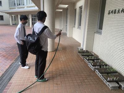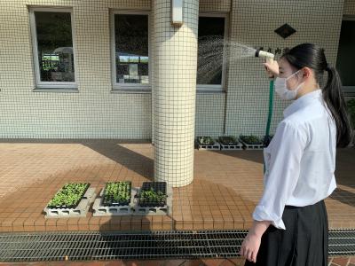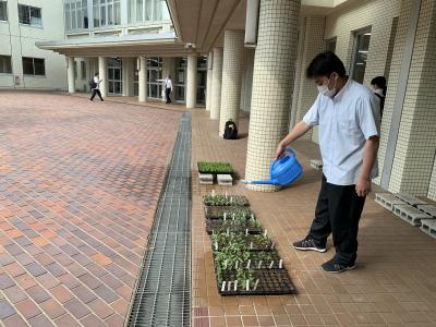 毎朝、水やり当番の生徒は成長を楽しみに水をあげています。