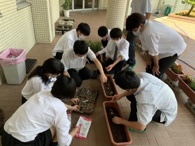 5月25日(火)に全校生徒が花の種を植えました。