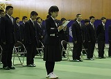平成29年度入学式が本日4月10日(月)に挙行されました。学校長式辞のあと、来賓祝辞として、PTA代表 橋本寿美子様、内灘町長 川口克則様よりご祝辞をいただきました。新入生を代表して大門三倖さん(内灘中学校出身)が「内灘町にある高校の生徒として、内灘町の活性化に貢献する」ことを誓い、最後に生徒会とサッカー部が校歌の二部合唱を披露しました。入学した92人は高校生としての第一歩を踏み出しました。