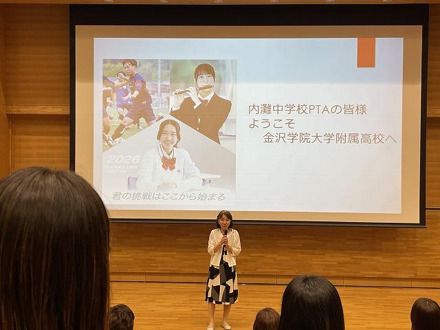 大学の附属高校であることの強みを最大限活かした教育について説明していただきました。またグリーンフィールドⅡ・Ⅲ等、すばらしい施設を見学させていただきました。金沢学院大附属高校の先生方、本当にありがとうございました。
