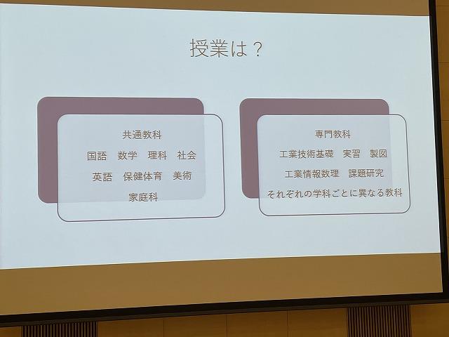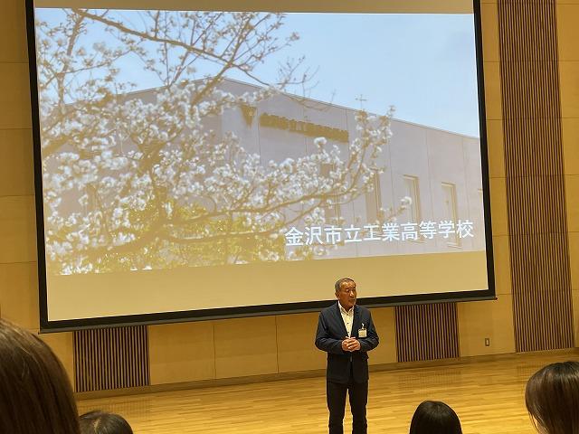 充実した設備のもと、5つの科の特徴を分かりやすく説明していただきました。また、3年生による課題研究の授業の様子も見学させていただきました。楽しそうに学ぶ生徒さんたちの表情がとても印象的でした。金沢市立工業高校の先生方、本当にありがとうございました。