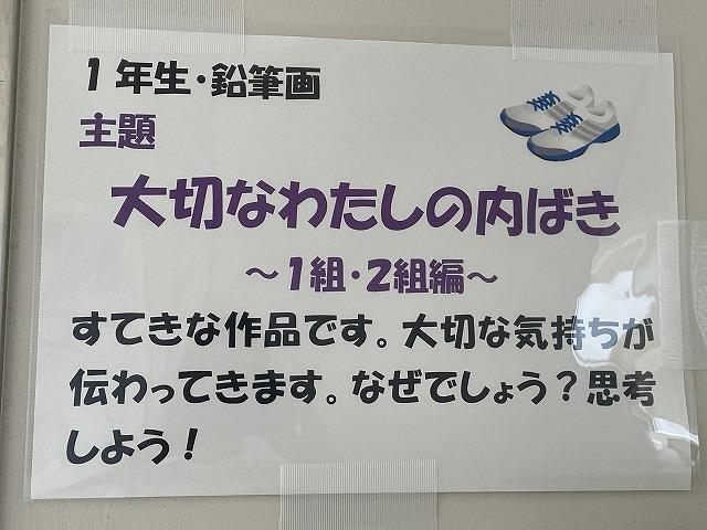 1年生は美術の授業で鉛筆でそれぞれの内がきを描くことに取り組んでいます。個性あふれる素晴らしい力作が掲示されています。