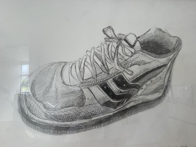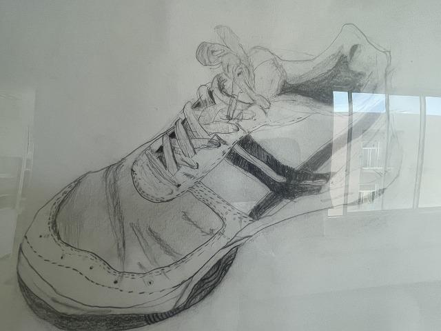 1年生美術科「鉛筆画 大切なわたしの内ばき」