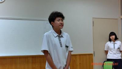 2025年9月12日 13時33分9/12(金)5限の学級活動では、後期の学級組織決めを行っています。組織決めに先立ち、生徒会執行部から体育祭に向けてメッセージがありました。内容は「主体的に行動しよう」ということです。生徒会長を中心に、「どんな小さなことでも自分で考えて自分から行動するように」という呼びかけがありました。来週はブロック結団式やブロック練習が始まります。先生たちは口出しをすることはないでしょう。生徒の皆さん一人ひとりの主体性が発揮されることを期待しています。頑張ろう!