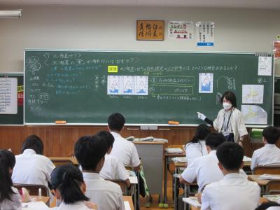 生徒たちの素敵な気づきを学級全体で共有し、北海道の特色にせまっていました。