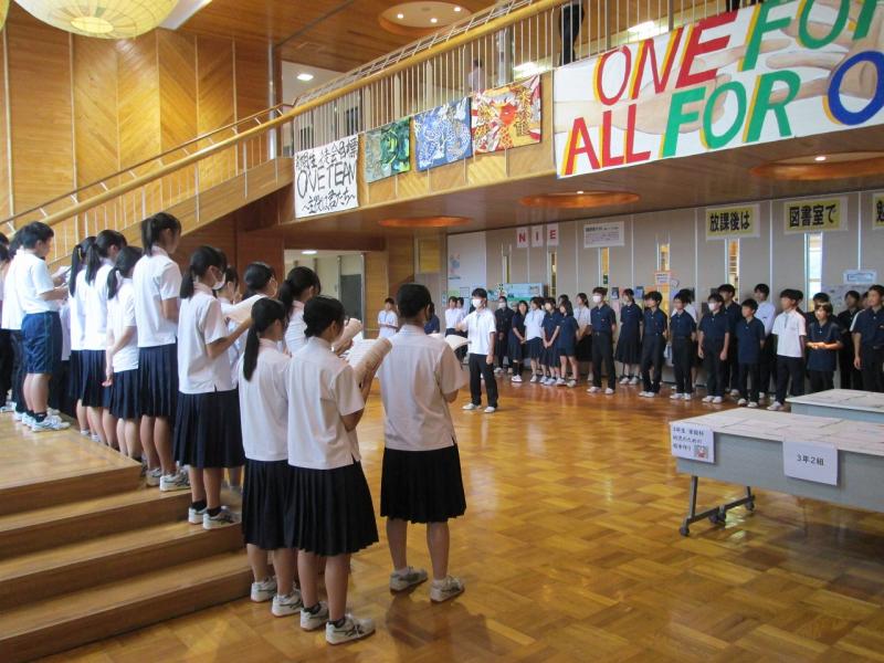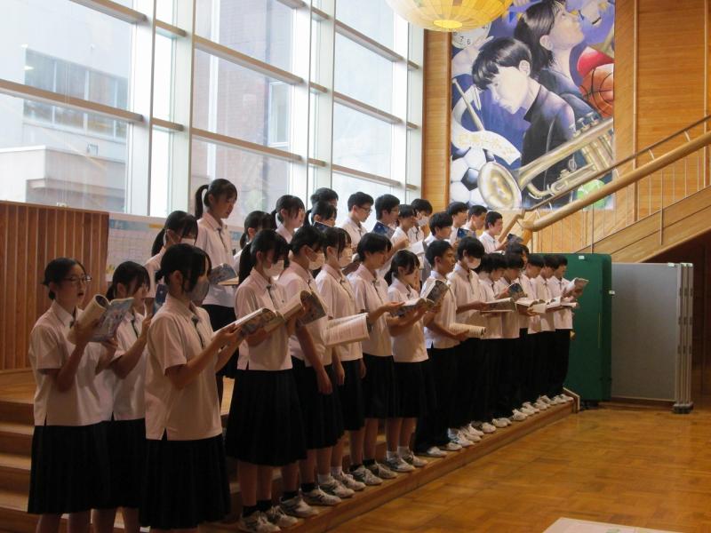 2025年10月10日 16時05分10/10(金)、放課後練習の2日目です。どの学年の生徒たちも頑張っていました。体育館ステージや生徒ホールは1日2クラスを前半・後半に分けて割り当てています。この日は他学年の合唱を見学する場面がありました。1年生は3年生の合唱を聴いて感じることがあったでしょうし、3年生も聴衆を前にして気持ちの張りもアップしていたと思います。