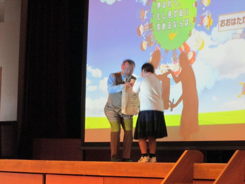 大畠崇央さん、本当にありがとうございました。なお、今回のご講演料については、大畠さんのご厚意により、本校PTAを通じて後日、内灘町社会福祉協議会に寄付をさせていただき、震災からの復興に役立てていただきたいと思います。