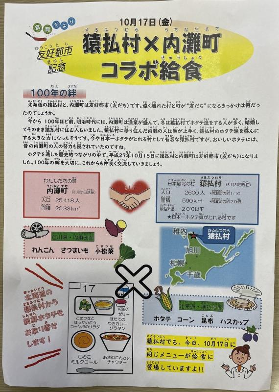 2025年10月18日 08時18分北海道お猿払村と内灘町は友好都市です。今から100年ほど前の明治時代、内灘町では漁業がさかんで、冬は猿払村でホタテ漁を多く、そのまま猿払村に移り住んだ人もいました。今では、「日本一ホタテがとれる村」の猿払村ですが、これには昔の内灘町の漁師さんの努力も隠されていたのですね。