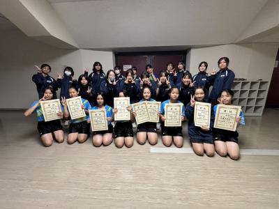 女子団体戦は2回戦を3-0で松任中に快勝しました。続く準決勝、野々市中との対戦は2-3惜敗しました。順決定戦では1-3で津幡南中に勝利宇することはできませんでしたが、ベスト4に進出し、3位入賞(県選抜大会出場)です。おめでとうございます。 個人戦では飯田さんがベスト8に、太田さんと池野さんがベスト16に進出しました。