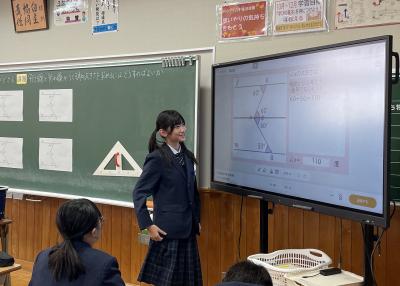 2025年11月4日 17時50分2年生数学「平行線と折れ線のつくる角の大きさを求めるにはどうすればよいか」