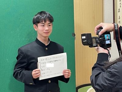 令和7年度北國スポーツ記録賞に本校陸上部の東田咲楽さん(女子100mH)、奥野沢さん(男子100m走)、中谷望花さん(女子100m走)の3人の選手たちが受賞することになりました。この日、北國新聞社の記者さんが朝刊掲載用の写真を撮りに来てくださいました。