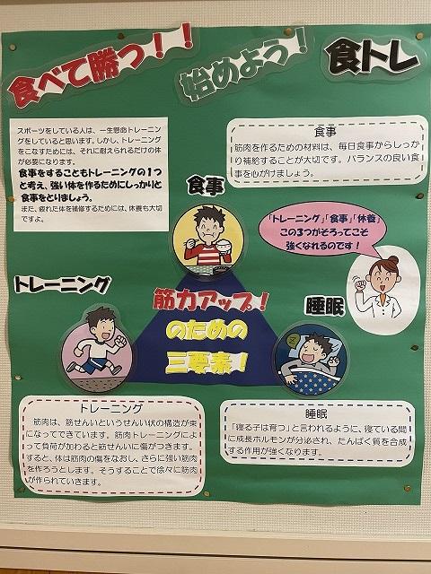 1階職員室前の掲示板には本校栄養教諭によるメッセージボードや献立表、食育に関する掲示物等が掲載されています。本校にお立ち寄りの際に、是非ご覧いただきたいと思います。