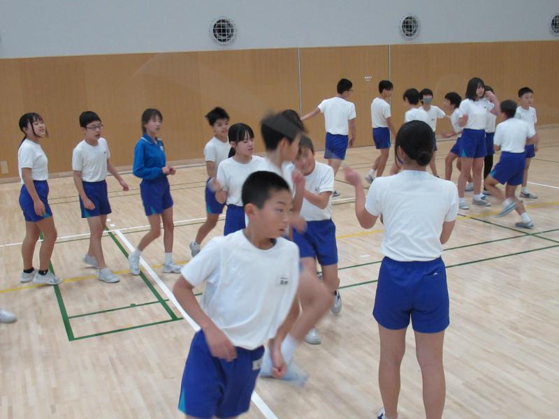 子どもたちは、前の人との間隔をつめたり、跳ぶときに「はい」と声をかけたりと、みんなでタイミングを合わせる工夫をしていました。