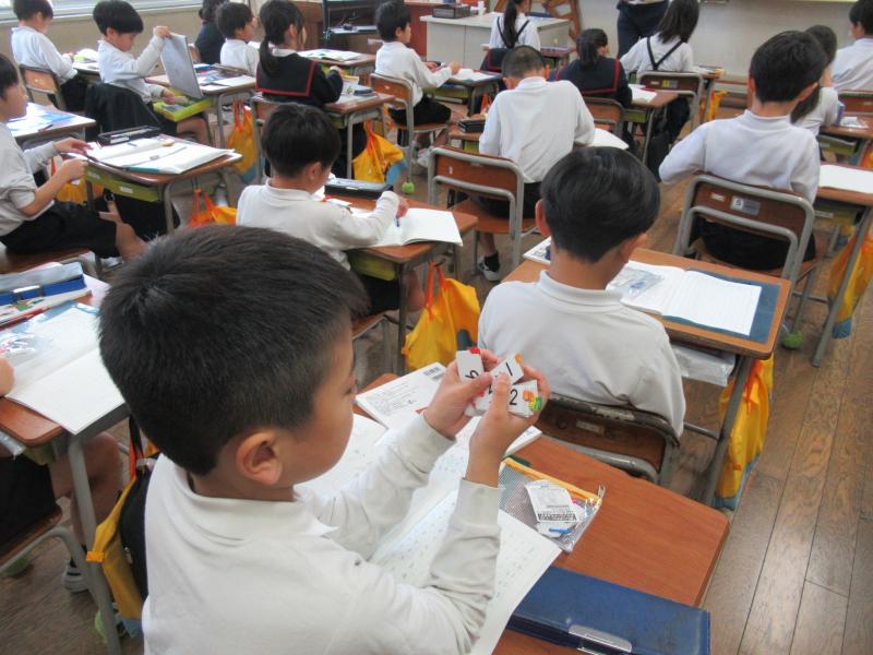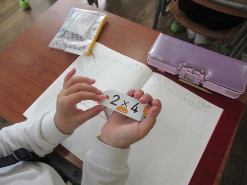 2年生では、かけ算の学習がはじまりました。クラスごとに進度の差はありますが、5のだん、2のだん、3のだん、4のだん・・と順に学習しています。子どもたちも、「きょうは○のだんだ!」「○のだん、もうすらすら言えるようになったよ!」と新しい学習にやる気いっぱいです。学校では、学習のあとに一人ずつ九九を言えるかどうかのテストをしていきます。かけ算の学習は何度も反復して覚えることが大切なので、ぜひご家庭でも、お時間のあるときにお子さんの九九チェックをしたり、すらすら言えたことを褒めていただきたいと思います。