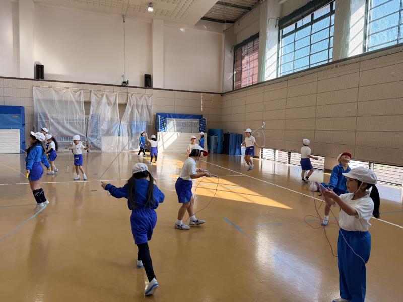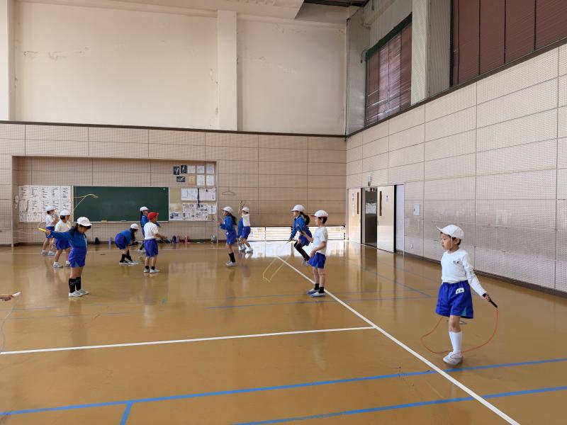 今日の体育では、1年生のみんなが“はじめてのなわとび”にチャレンジしました。 なわとびを持つと、「どうやってとぶの?」「むずかしいかな?」と少しドキドキしている様子も見られましたが、先生のお話をよく聞いて、一生けんめいにがんばる姿がとてもすてきでした。 最初は、なわの持ち方や回し方の練習からスタートしました。 くるっと回してみたり、ぴょんと軽くジャンプしてみたり、友達と見せ合いながら楽しそうに取り組む姿がたくさん見られました。 これから、少しずつできる技がふえていくのが楽しみですね。