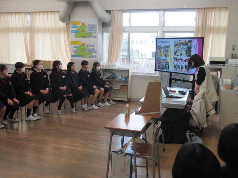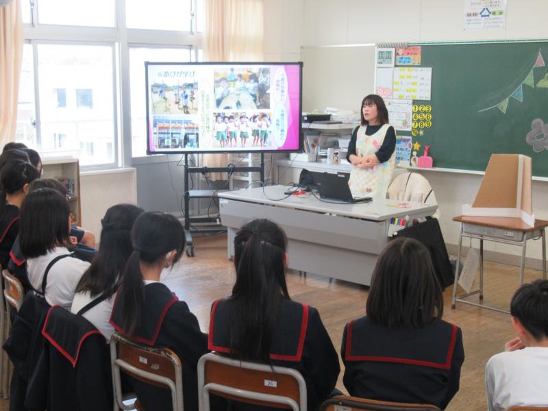 6年生が、宇ノ気中学校のALTであるジョエリー先生と外国語の学習を行いました。はじめに、ジョエリー先生から自己紹介と、出身地であるイングランドについての紹介がありました。イングランドの文化や生活の様子について知ることができ、子どもたちは興味深そうに話を聞いていました。その後の質問タイムでは、子どもたちからたくさんの質問が出され、ジョエリー先生との交流を楽しむことができました。外国の文化にふれながら、楽しく学ぶ時間となりました。