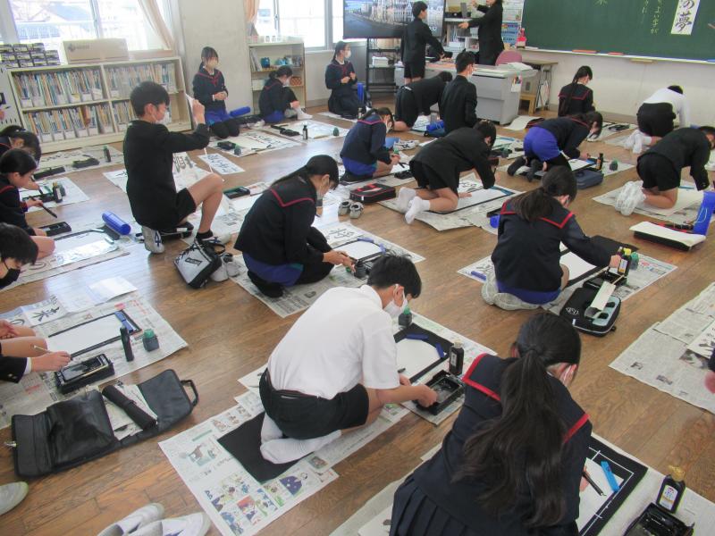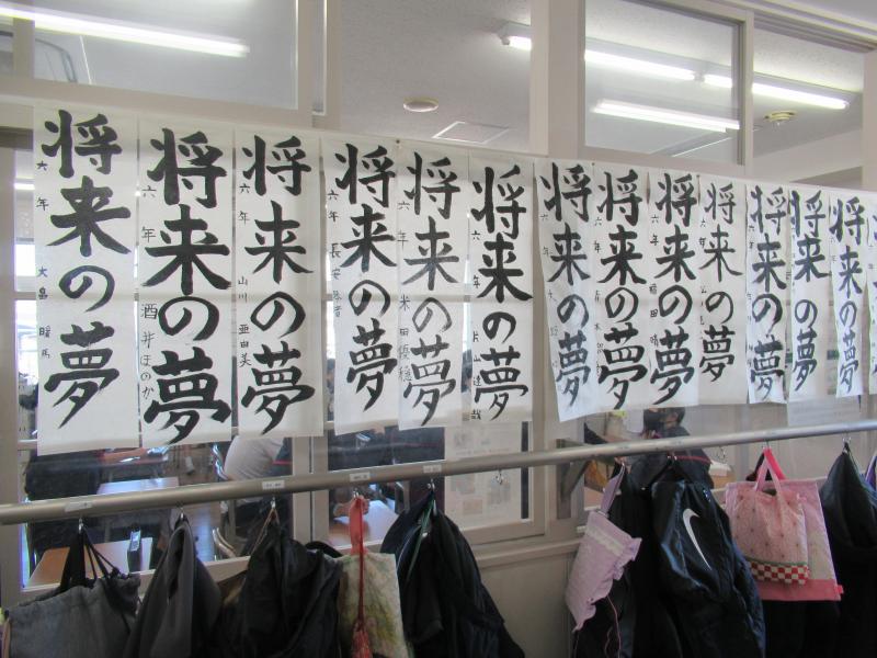 今年の文字は 「将来の夢」 です。子どもたちは、真っ白な紙に向かい、「自分はどんな大人になりたいのか」「どんな未来を思い描いているのか」を考えながら、心を込めて筆を運びました。教室には静かな緊張感が漂い、一画一画に集中して取り組む姿からは、最高学年としての自覚や成長が感じられました。小学校生活も残りわずかとなった6年生。今回の書き初め大会が、自分の将来を見つめ、これからの一歩を考える大切な時間となりました。