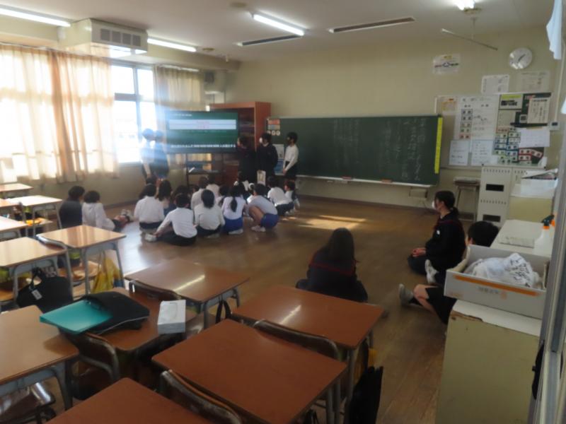 6年生が、宇ノ気中学校のALTであるジョエリー先生と外国語の学習を行いました。はじめに、ジョエリー先生から自己紹介と、出身地であるイングランドについての紹介がありました。イングランドの文化や生活の様子について知ることができ、子どもたちは興味深そうに話を聞いていました。その後の質問タイムでは、子どもたちからたくさんの質問が出され、ジョエリー先生との交流を楽しむことができました。外国の文化にふれながら、楽しく学ぶ時間となりました。
