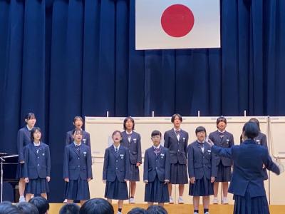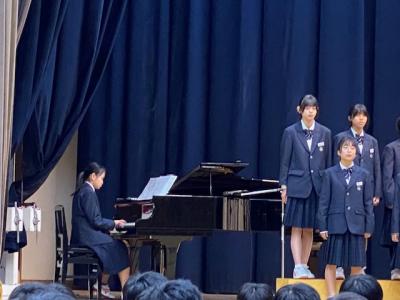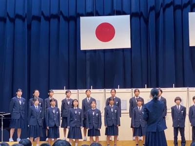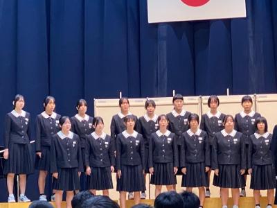この学年は、歌うことが大好きで歌唱の力も大変高いものを持っている学年で、どの学級もレベルの高い合唱を歌いあげました。今年の3年生の姿を見て、1、2年生は3年生のように歌いたいと感じた生徒が多くいたと思います。3年生の皆さん、本当に素敵な歌声をありがとうございます!