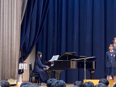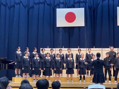 スタートの1年生は緊張したと思いますが、1番の4組が良いスタートを切ってくれたことで、どの学級も練習通りの歌声を披露できたと思います。また、月曜日のリハーサルを終えて、ソロを入れたり、強弱を付けたりと素敵な歌声になっていました。