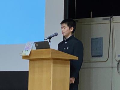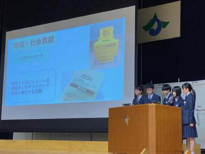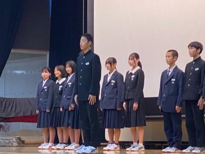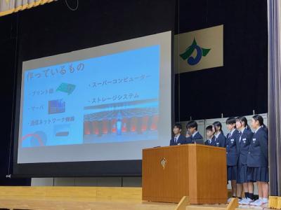 1、2年生の合唱コンクール後に、1年生の総合の発表、石川県のビブリオバトル大会に出場する2年生の発表がありました。