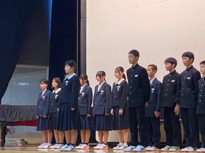 本日、令和7年度宇ノ気中学校文化祭が開催されました。3年生を中心として、体調不良等による欠席者が多く、本日は1、2年生の合唱コンクールと総合の学習発表を実施しました。