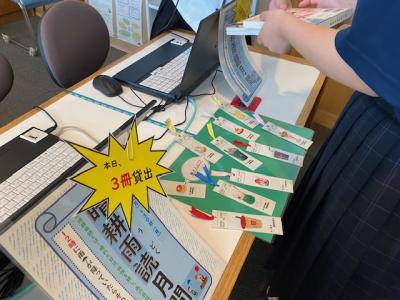 また、本日は「晴耕雨読週間」として、雨が降った日はプラス1冊本を借りることができるとあって、図書館は大盛況でした。明日の天気も雨のようです。