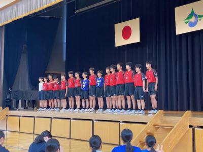 生徒会副会長と校長先生からの激励の言葉の後に、各部のキャプテンによる選手宣誓が行われました。男子バレーボール部キャプテンが代表として「これまでやってきたことに自信を持って、精一杯頑張ってきます!」と力強い宣誓を行いました。